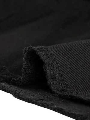- Solid Denim, Woven, Regular Fit, Slant Pockets, Raw Hem