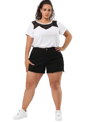 ABOUT US: A plus size brand inspired by the need of its customers. It can be suitable for you to wear on various occasions, the appropriate tailoring will show your perfect curve, and the comfortable fabric will make you have a pleasant experience. This denim shorts is stretched with soft to the touch fabric. Simple mid waist raw hem design, they will offer you a fashionable casual look, hug your curve, and keep its shape all day. t can be worn with casual T-shirts or shirts for daily casual outings; it can also be paired with sneakers or sandals for outdoor activities and travel.