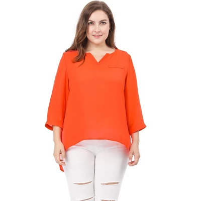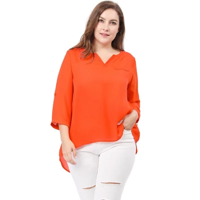 A versatile blouse is styled with a flattering split neck, a high low hem and 3/4 roll-tab sleeves for a more relaxed look.Body size chart shows fitting size, please check ythe measurements to make sure the item fits before ordering.Please note that color may vary slightly according to monitor settings.