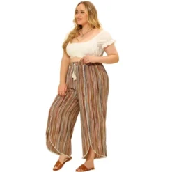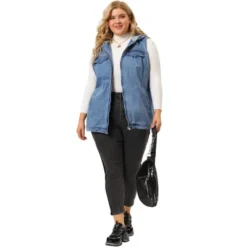 Agnes Orinda Women’s Plus Size Wide Leg Stretch Washed Palazzo Denim Jeans