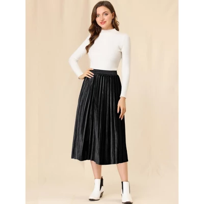 - Feature: Accordion Skirt, soft, High Waist, Elastic Waistband, Midi Skirt, Shiny Metallic, Irregular Hem