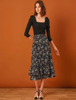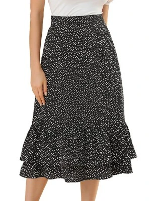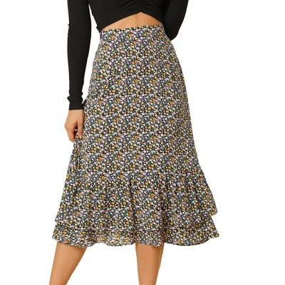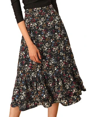- Floral Print, High Waist, Layered Ruffle High Low Hem