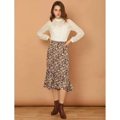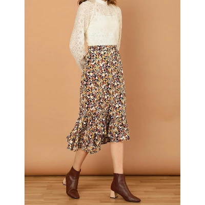 Channel your everlasting love for floral prints with this ultra-classic midi skirt with a ruffle hem, which just adores the detailing for a feminine and fashionable feel. It would be easy to pair it with a simple, light, and plain shirt or blouse. Featuring floral detailing and a midi length, it is the perfect casual piece to be paired with sandals or sneakers for a cute day look.