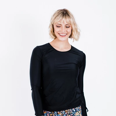 Whether your surfing or hanging out by the pool, this stylish long sleeve swim top is the perfect option to keep you protected from the sun. Sold as top only. Pair with your favorite swim bottom to complete the look.