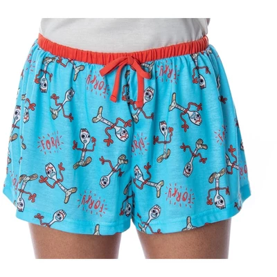 - FUN CHARACTER DESIGN – This 2 pc pajama set features a short sleeve shirt top and shorts. The top has a Forky face design on the front. The bottoms feature a cute allover print of the multiple Forky character and script designs.