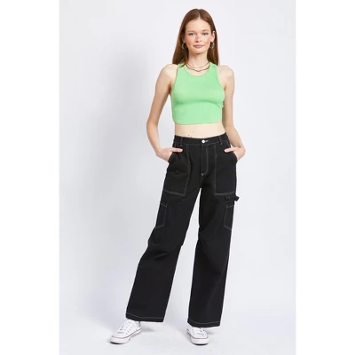 Straight-leg cargo pants from Emory Park in a solid color. Made of 100% cotton and tailored in a high-rise cut with a casual fit. Features a font fly zipper with button closure and belt loops to accessorize with ease. Two front pockets and two cargo side pockets complete the design.