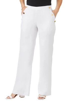 Make waves with this wide-leg linen pant detailed with sailor buttons at the hips. Back elastic waistband for easy pull-on styling. Pair with a linen blazer for a head-to-toe outfit that’s sunshine ready!