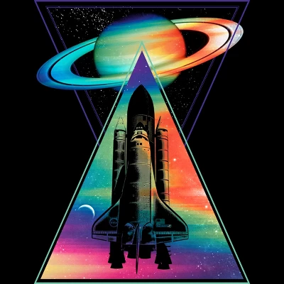 - Explore new worlds with this cool design featuring a space shuttle blasting off into a colorful sky triangle, traveling to a colorful Saturn outlined with a triangle pattern outline.