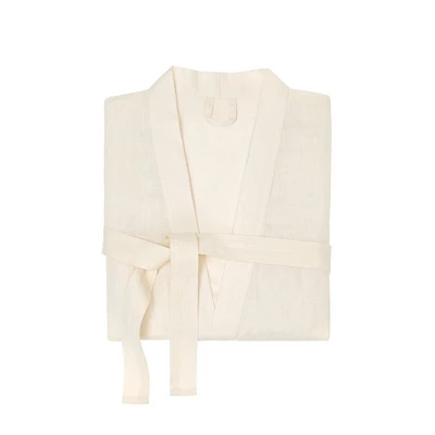 Our Linen Robe is designed to take relaxation to the next level. Linen is more durable than cotton and woven more loosely creating a more breathable fabric. The model is 5’6, and is wearing a size small.