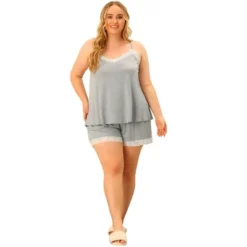Agnes Orinda Plus Size Sleeveless Sleepwear For Women Contrast Lace Cami Pajamas Set