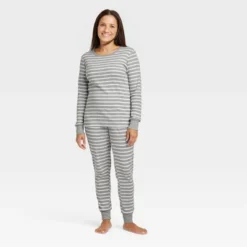 Women’s Striped 100% Cotton Matching Family Pajama Set – Gray