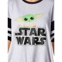 Star Wars Womens’ The Mandalorian Grogu Baby Yoda Nightgown Pajama Dress Grey