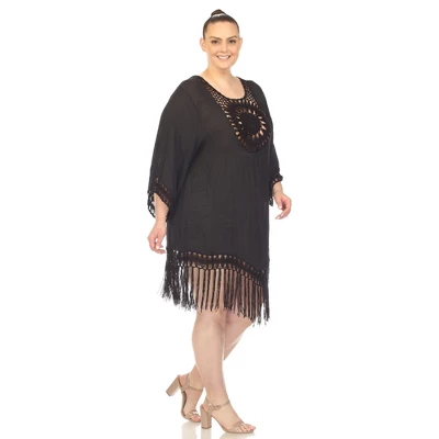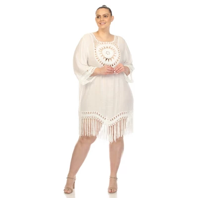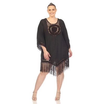 This White Mark cover up is a perfect style partner on your next get-away. The front crochet design with intricate details is inspired by the stunning sunshine. Made from the comfiest and lightly sheer fabric that is soft to the skin. Features a ¾ wide sleeves and fringe edges for a chic look.