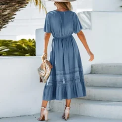 Women’s Ruffled V-Neck Back Tie Cover-Up Mini Dress – Cupshe