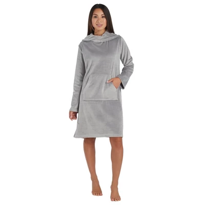 Up your downtime game in the Softies Snuggle Lounger. This wardrobe must-have features lightweight and stretchy velour fabric, a flattering cowl neck opening and a convenient front kangaroo pocket. Pair it with leggings when youÂ’re on the go, or wear it solo to lounge at home. Prepare to switch into comfort mode every time you put it on.