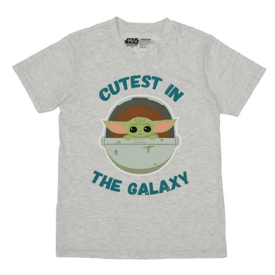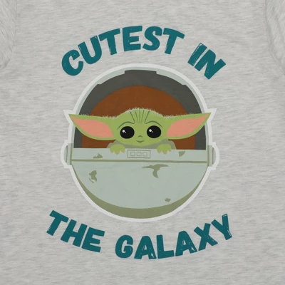 Celebrate the cutest jedi in the galaxy with this Star Wars Madalorian sleep set. The set includes a graphic tee with an image of Grogu in his hovercraft surrounded by blue text that reads, “Cutest in the Galaxy,” and a pair of pink stretch pants with images of Grogu and his Mandalorian friend. The pants come with a pair of pockets and an adjustable elastic waistband. Show some love for your favorite sci-fi series with this comfy sleep set.