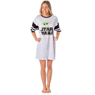- CLASSIC DESIGN – This Star Wars pajama nightgown shirt features the character known as Grogu/The Child in a distressed design with the movie film title logo “Star Wars” under him. It’s perfect for curling up in and enjoying all your favorite Star Wars media!