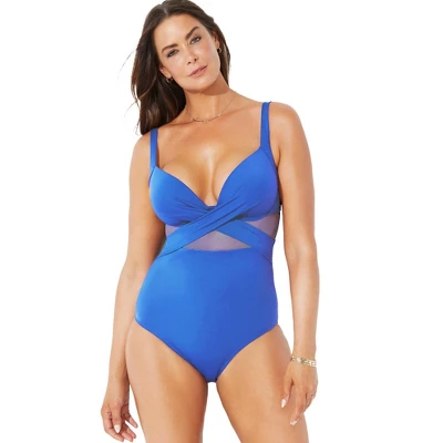 Think of this one piece as your wardrobe’s Little Black Dress. It’s quite the looker with its Fun sweetheart neckline, criss-cross front and mesh lined cutout details. Take it for a swim, then after, head over to the sunset party for some apres-swim cocktails. Like all Swimsuits for All swimwear, it’s designed by our swimsuit experts for an unparalleled fit.