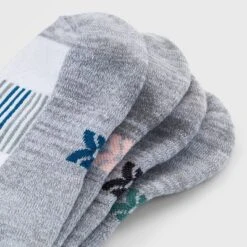 Low-cut athletic socks made from a moisture-wicking fabric with ventilating mesh help keep your feet cool and comfy during a range of athletic activities. The socks are thoughtfully created with arch support as well as zone cushioning on areas of the feet that need it the most, and smooth toe seams, a reinforced heel and toe, and Y-heel stitching complete the comfortable fit. Plus, the solid black and gray colors and low-cut design allow the rest of your athleisure look to take center stage while lending versatile wear.