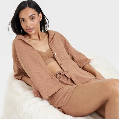 Women’s 100% Cotton Gauze Short Sleeve Notch Collar Top – Stars Above™
