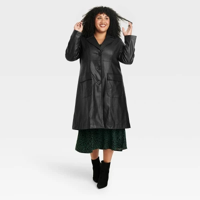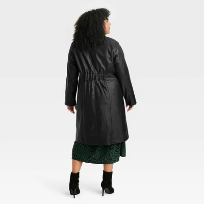 This Faux Leather Trench Coat from Ava & Viv™ is a cool-weather must-have for your well-rounded closet. Made of midweight faux leather with taffeta lining, this textured solid-color long coat hits below the knee for comfy warmth and coverage. The long-sleeve trench coat is designed with a notched collar, single-breasted front with three buttons, and elastic cinching on the back waist for a shapely look. Distinct flap patch pockets on the front complete the design with functional flair, and you can pair it with jeans, slacks, skirts or dresses, then complete the look with ankle boots, pumps or loafers.