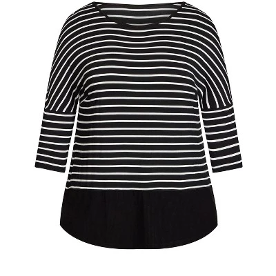 Look chic in the easy comfort of the black Rib Stripe Top. Finished with a contrast trim hemline, this top adds a layered feel to your everyday wardrobe with its soft ribbed fabrication and timeless striped design.Achieve your new-season fashion goals with Zim & Zoe. Designed with your comfort in mind, Zim & Zoe is all about easy movements and breathable finishes. Championing breezy tunics, bold prints and curve-loving designs, discover casual and creative pieces that will take your style to striking new heights. Available in size 12 – 24.
