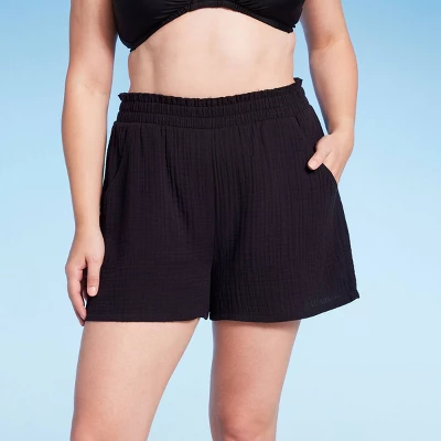 Show off your chic style at the beach or pool in these Pull-On Frayed Hem Cover-Up Shorts from Shade & Shore™. The cover-up shorts are crafted from 100% cotton fabric with opaque lining to offer you cool comfort all day long, while a full elastic waistband provides a snug, stay-put fit. The ribbed design with a frayed hem elevates the look, while front pockets give you space to stash small items. You can pair these shorts with a variety of swimsuits to complete your beach-ready look.