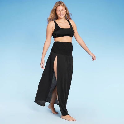 Convertible cover-up dress from Wild Fable™ in a solid hue. Smocked bodice with an attached long skirt featuring a high slit. Made of a flowy fabric. Suitable for use as a skirt cover-up or a one-piece cover-up.