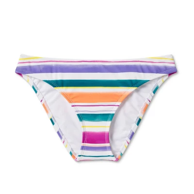 Give a cheerful update to your swimwear with this Striped Medium Coverage Hipster Bikini Bottom from Kona Sol™. This bikini bottom is printed with multicolored stripes for a fun touch of on-trend style, and it features a medium-coverage hipster silhouette to offer you comfy coverage and a chic look. The stretchy fabric lends comfortable movement and fit. Pair it with a matching bikini top or with other bikini tops for endless styling options.