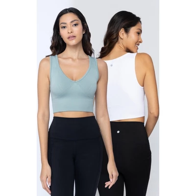 This medium impact bra is designed with a compression fit to hold your chest down while jumping, running or stretching. This athleisure bra will keep you in place through any physical activity. The seamless material provides additional support and overall comfort. This V-neck bra is made with four-way stretch fabric to move with you and allow a full range of motion.